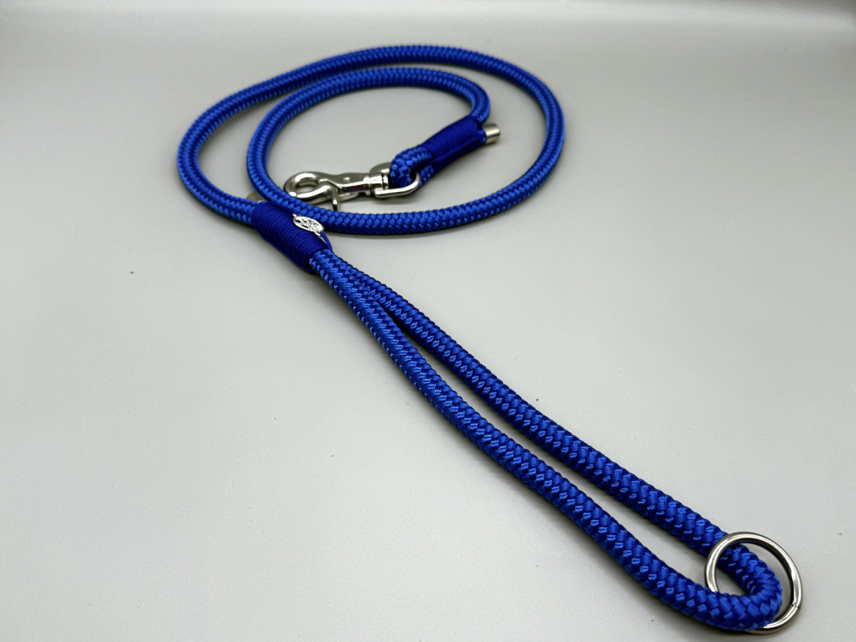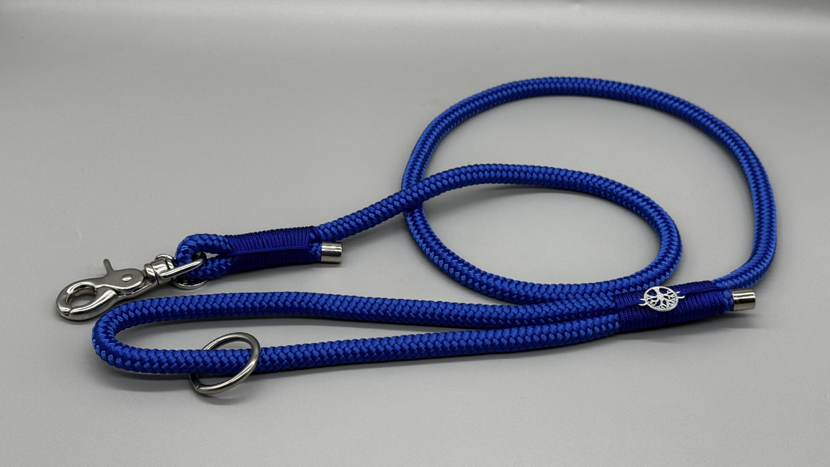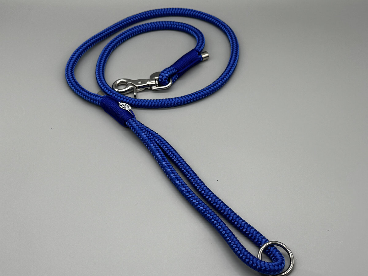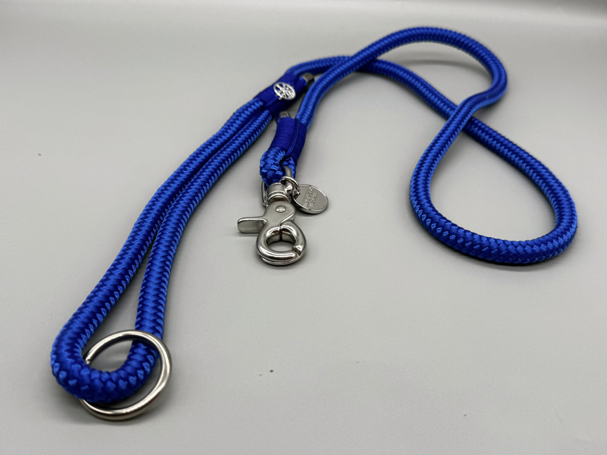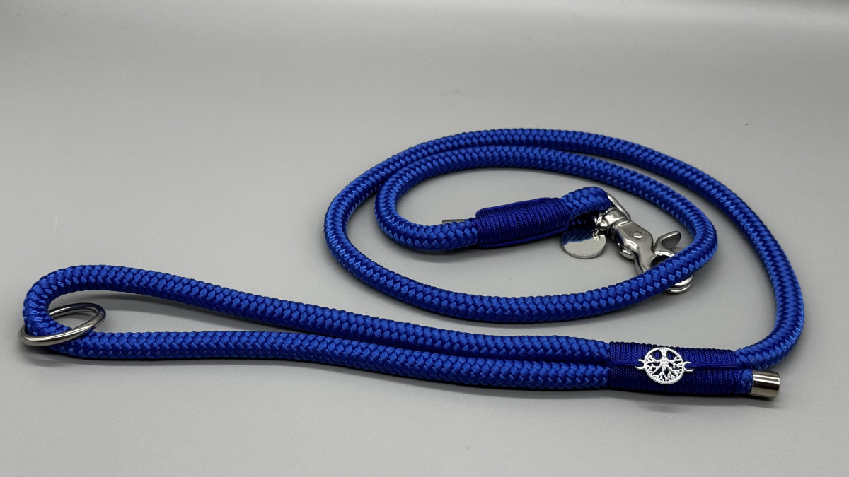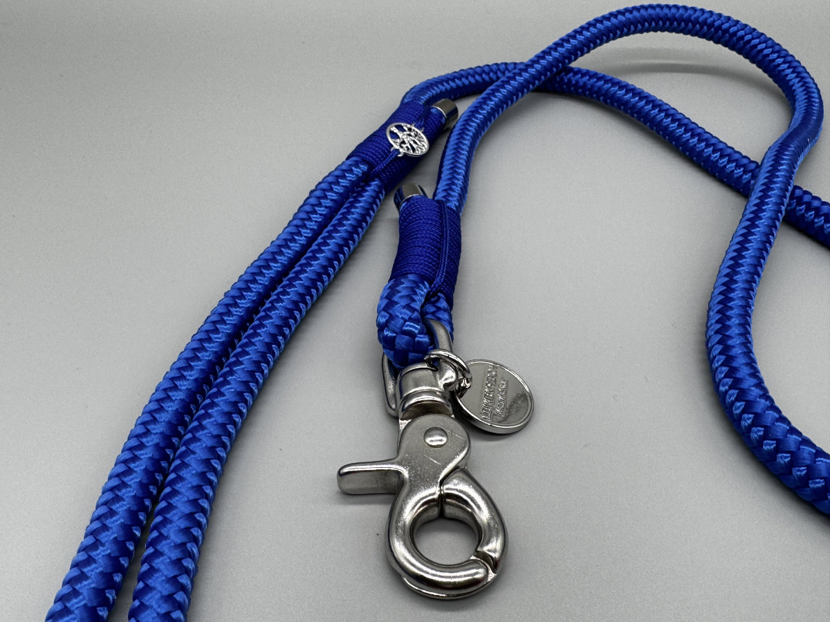 Die Leine „Sassari“ ist ein blauer Traum. Das PPM Seil in royal-blau und die royal-blaue Takelung aus Paracord machen diese Leine zu einem königlichen Accessoire für Deinen Hund. Die silber-farbene Hardware passt hervorragend zu dieser Kombination!